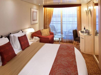 - Kajuty sú umiestnené v blízkosti lodného Spa. K ich vybaveniu patrí posilnený systém vzdušnej filtrácie, posteľ Queen-Size (v kategóriách Edge King-Size), veľké zasúvacie sklenené dvere, exkluzívne posteľné prádlo eXhale®, veľkorysé skladovacie priestory.