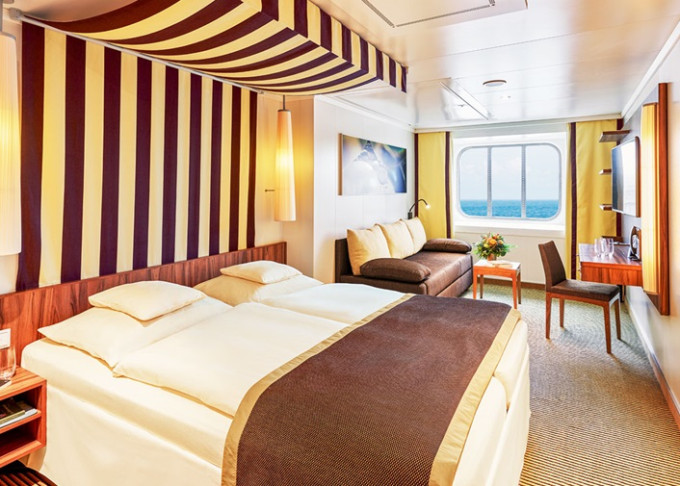 | MD - Vonkajšia kajuta PREMIUM 22-23 m². Neotvárateľné okno. 4. paluba. Max 4 osoby. Cenový model Premium. | 3 620 € 1 810 € za osobu | ||