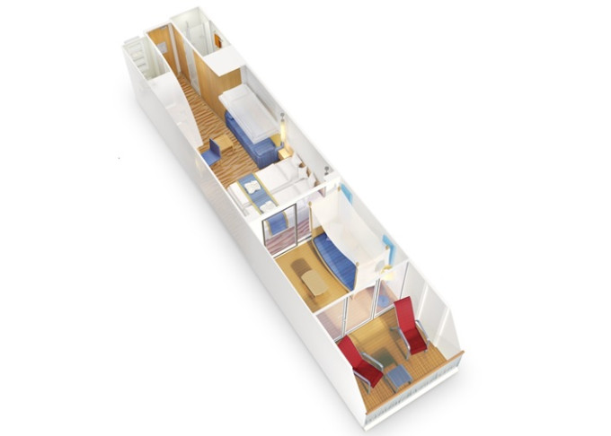 | KV - Kajuta s verandou CLASSIC Roulette kategórie: VA-VF. Cenový model Classic. | 4 998 € 2 499 € za osobu | ||