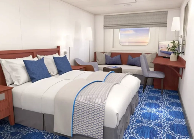| XBO - Kajuta s oknom Cosmos / obmedzený výhľad 14 m². Neotvárateľné okno s obmedzeným výhľadom. 6,7. paluba. Max 4 osoby. | 1 158 € 579 € za osobu |