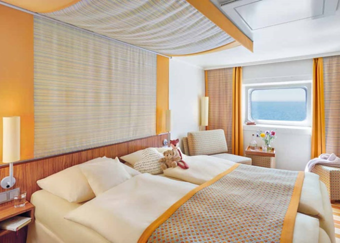 | CA - Vonkajšia kajuta PREMIUM / obmedzený výhľad 14-16,5 m². Neotvárateľné okno / obmedzený výhľad. 6. paluba. Max 2 osoby. Cenový model Premium. | 2 010 € 1 005 € za osobu | ||