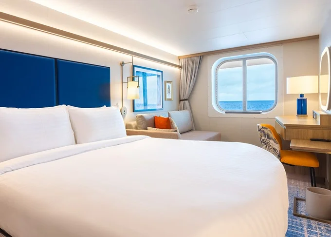 L5 - Kajuta s oknom Panoramic Ocean View 24 m². Celoplošné neotvárateľné okno, výhľad na more. 14. paluba vpredu. Max 3 osoby. 6 484 € 1 621 € za osobu
