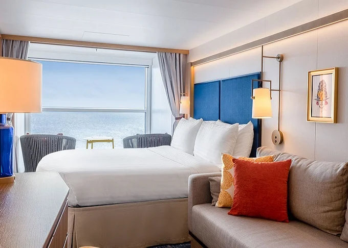 VP - Panoramic Suite 38-41 m². Celoplošné panoramatické neotvárateľné okno s výhľadom na more. 16, 17. paluba vpredu. Max 4 osoby. Výhody Suite Sky Class. 11 172 € 5 586 € za osobu
