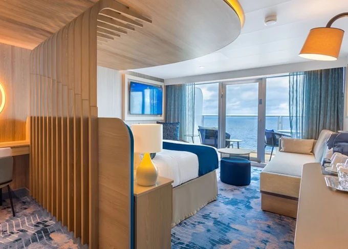 I3 - Kajuta Infinite Ocean View 23 m² (vrátane 4,5 m² verandy Infinite s výhľadom na more). 9,10,11. paluba stred. Max 4 osoby. 5 638 € 5 638 € za osobu