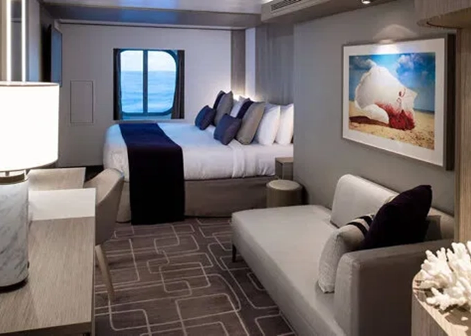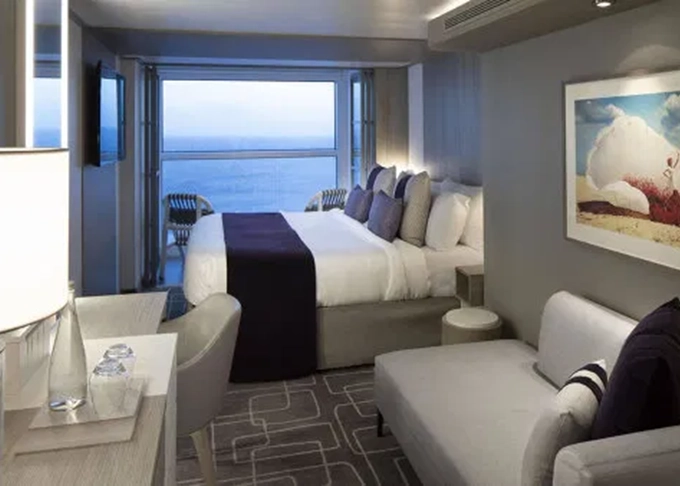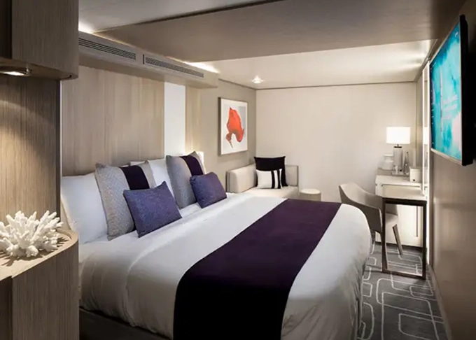 - Kajuty sú umiestnené v blízkosti lodného Spa. K ich vybaveniu patrí posilnený systém vzdušnej filtrácie, posteľ Queen-Size (v kategóriách Edge King-Size), veľké zasúvacie sklenené dvere, exkluzívne posteľné prádlo eXhale®, veľkorysé skladovacie priestory.