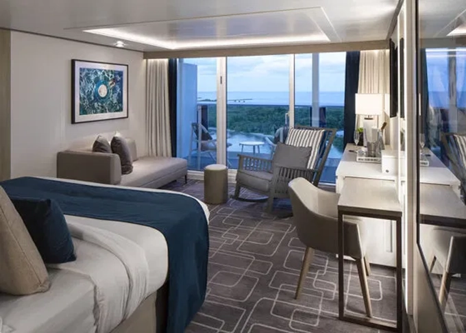 | IC - Iconic Suite 176 m² + terasa s vírivkou 64 m². 2 spálne, 2 kúpeľne (1 s vírivkou).12. paluba. Max 6 osôb. Výhody Retreat Suite + Icon Suite extra: Dizajn: Kelly Hoppen. Používanie fitness bicyklov Peloton® v kajute, In-suite Personal Retreat Host's komora, obliečky Celebrity eXhale™ s kašmírovým King matracom, elektronické ovládanie zariadení v miestnosti pomocou dotykovej obrazovky | 19 336 € 9 668 € za osobu | ||