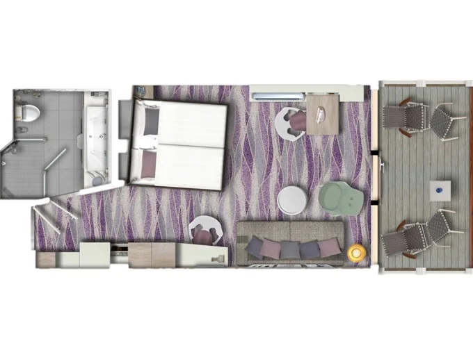 | JBAO - Junior Suite s balkónom 26 m² + balkón 7 m² so stolom. 10,11. paluba. Max 4 osoby. Výhody Junior Suite. | 10 798 € 5 399 € za osobu | ||